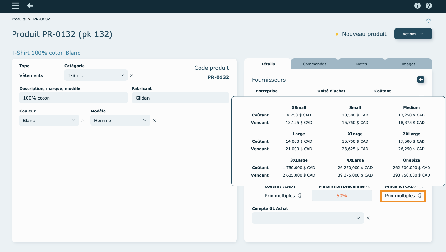• Les prix coûtant et vendant sont affichés dans des nouveaux "popover", étant donné la possibilité d'en avoir plusieurs.