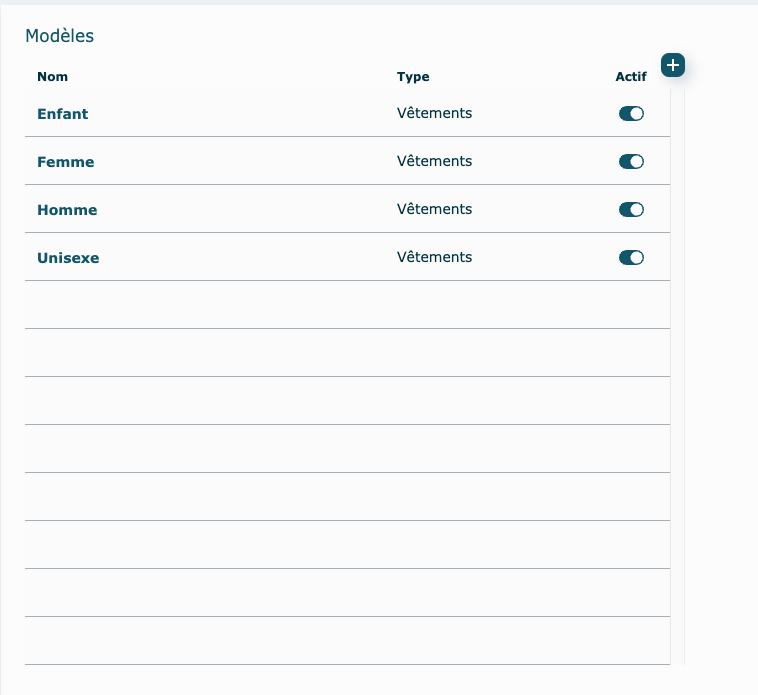 • Il est possible d'attribuer un modèle aux vêtements (homme, femme, enfants, unisexe).