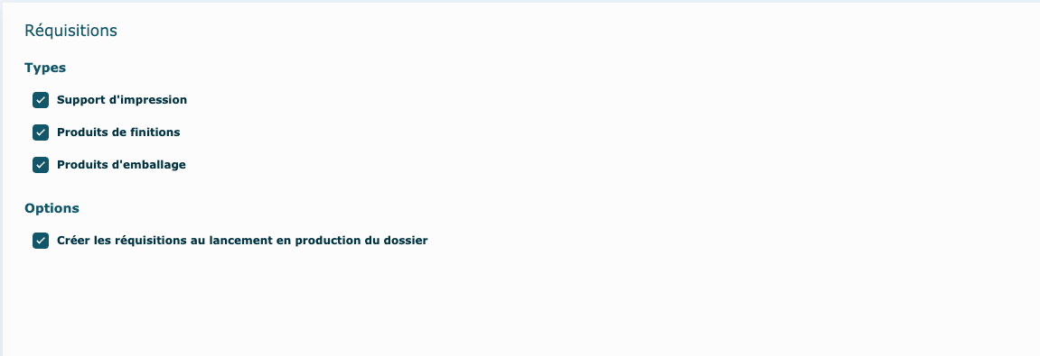 Vous avez également le contrôle à automatiser la création des réquisitions dès le lancement du dossier, ou bien vous pouvez décider de le faire manuellement depuis le module Dossiers.