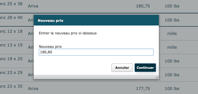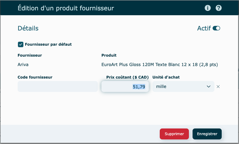 Pour modifier le prix coûtant d’un produit, cliquer directement sur le prix affiché. Vous pourrez ensuite ajuster le montant et faire Enregistrer.