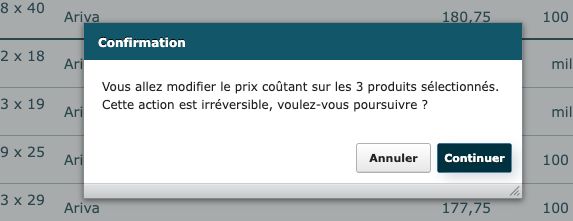Sélectionnez les produits dont vous souhaitez modifier le prix coûtant. Veuillez noter que seuls les produits d'un même fournisseur peuvent être modifiés simultanément.