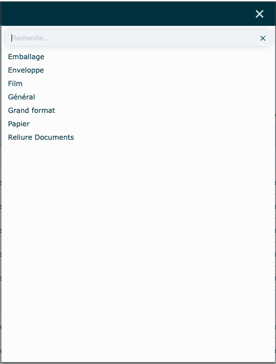 Chaque produit doit être associé à l'un des 7 types suivants : Emballage, Enveloppe, Film, Général, Grand format, Papier, Reliure documents.