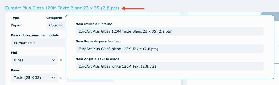 Pour préciser le nom que vous voudrez donner à la soumission (client) et au dossier de production (interne), cliquer sur le nom en haut pour faire ouvrir une fenêtre d'édition.