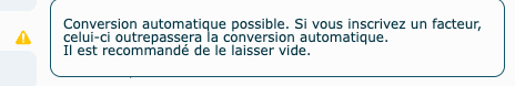 Une note apparaitra si une conversion automatique est possible et à ce moment, vous n'aurez pas besoin d'inscrire le facteur, car le système calculera le bon prix unitaire.