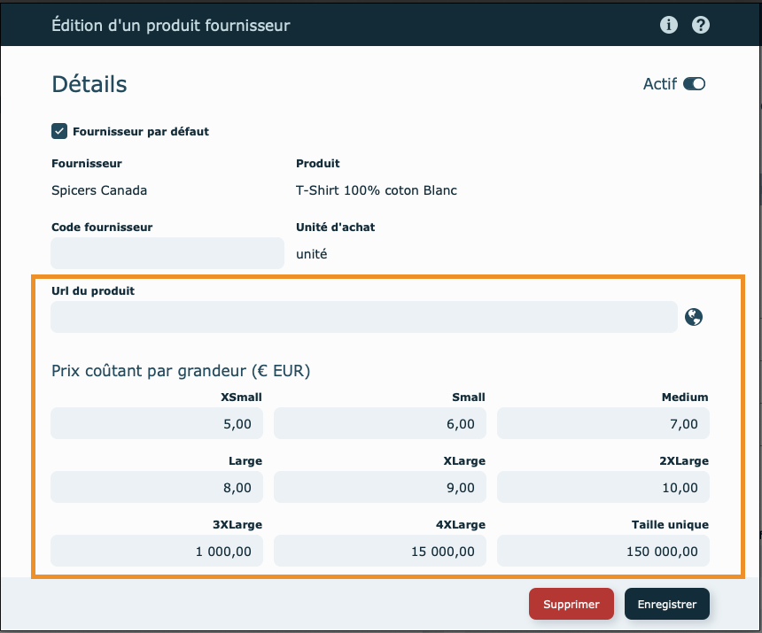 • Vous pouvez définir un prix par grandeur dans les fournisseurs.