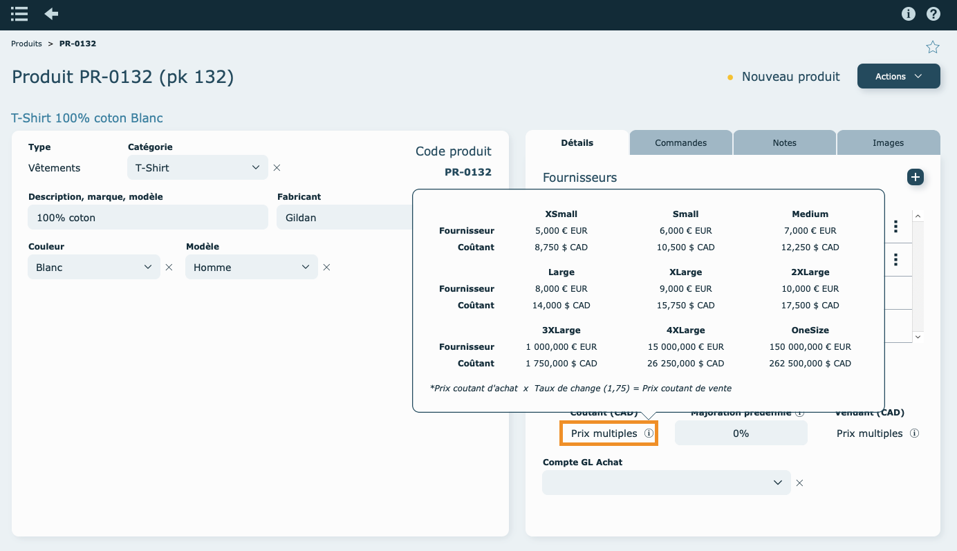• Les prix coûtant et vendant sont affichés dans des nouveaux "popover", étant donné la possibilité d'en avoir plusieurs.
