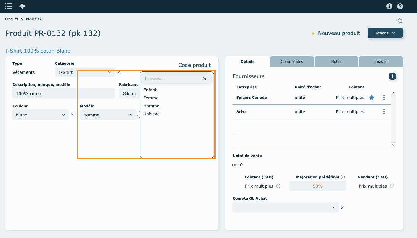 Chaque produit doit avoir au moins un fournisseur de base avec un prix coûtant et son unité d'achat. Vous devez identifier quel fournisseur sera celui par défaut et qui servira à bâtir le prix vendant pour la soumission.