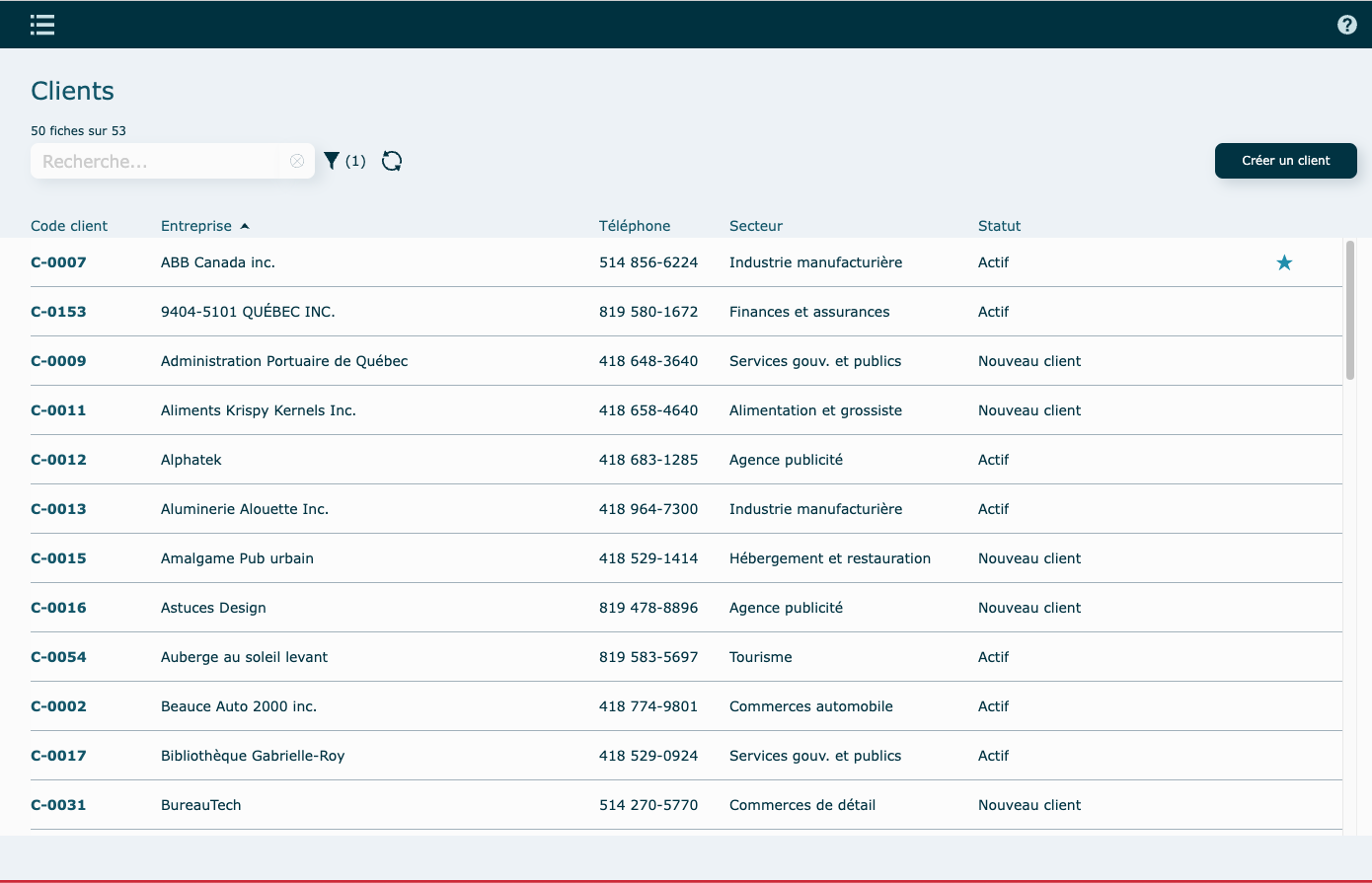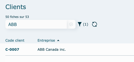 Propre à chaque module, il vous est possible d'appliquer différents filtres et/ou tris afin d'avoir une sélection plus précise des fiches à afficher.