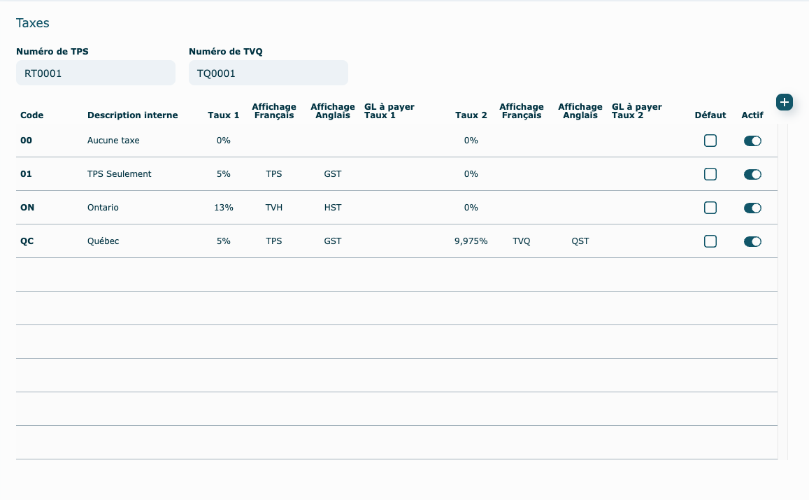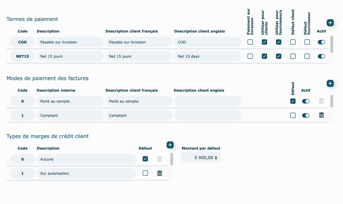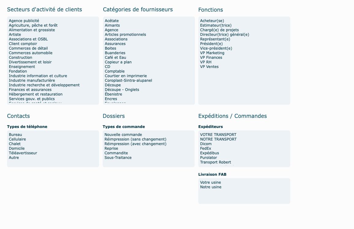 Cette section du logiciel vous permet de le personnaliser selon votre entreprise.