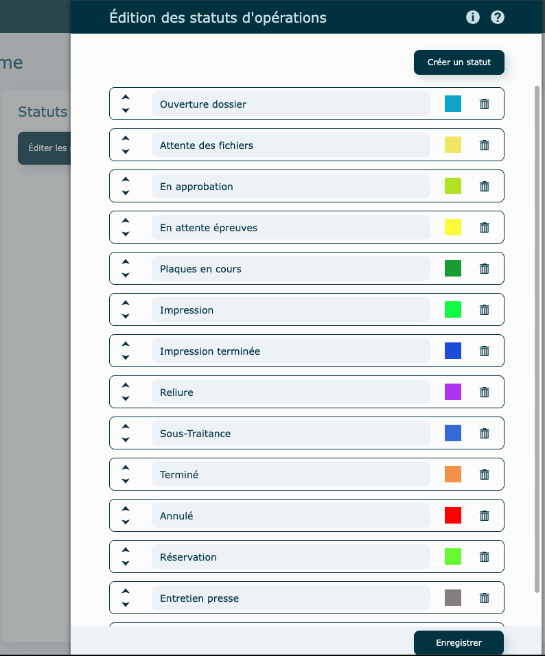 Dans cette section, vous pourrez contrôler les statuts d'opérations qui se trouvent dans le calendrier.