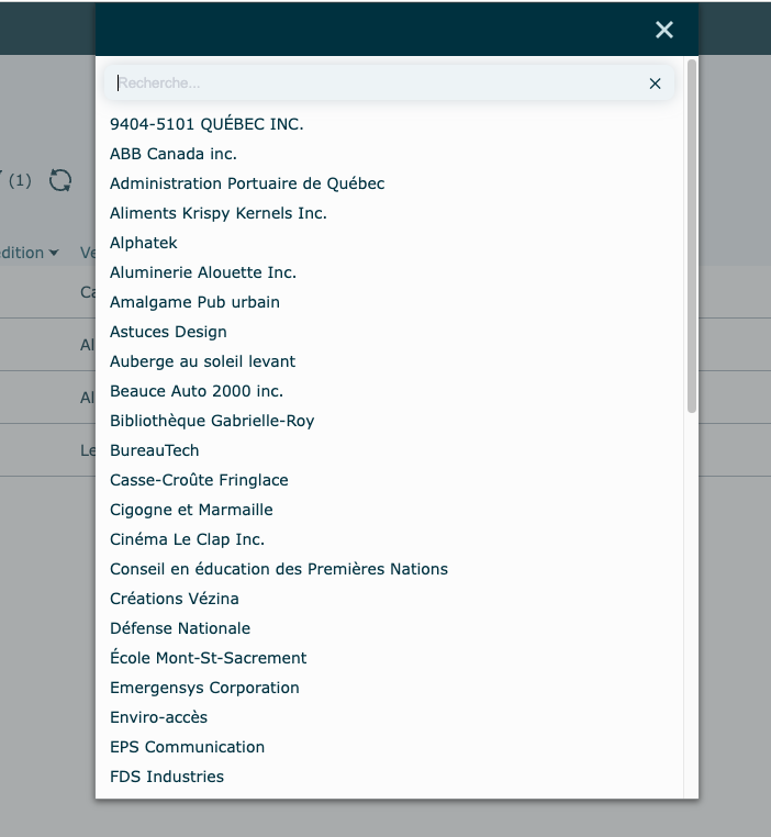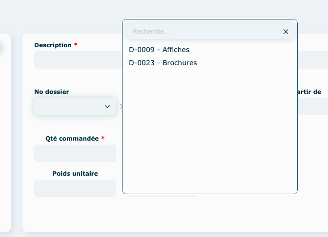 Sélectionner un dossier à expédier. Vous pouvez utiliser le filtre de recherche pour isoler un client.