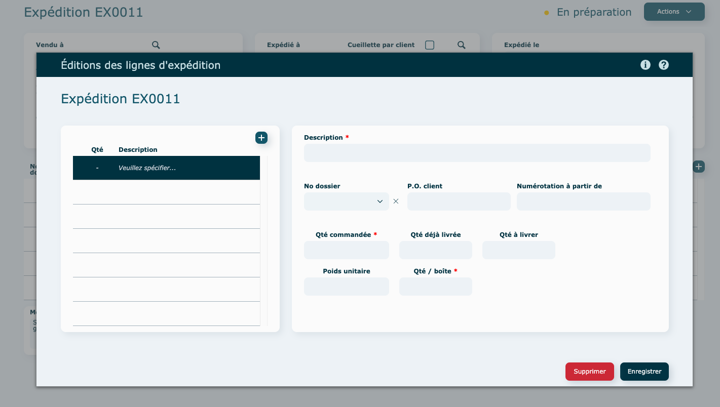 Par défaut, les lignes du détail des colis représenteront vos lignes d'expédition.