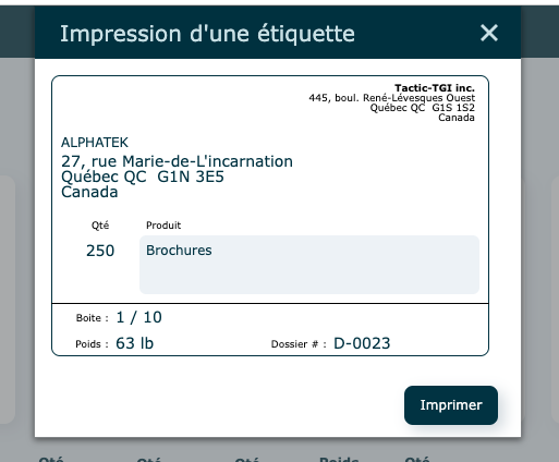 Cliquez sur le bouton Étiquettes ➝ 4 x 6 pour visualiser l'étiquette et l'imprimer.