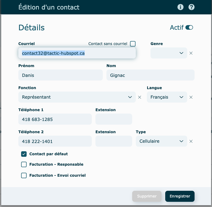 Les changements apportés lors de l'édition du contact seront appliqués dans le système au complet.