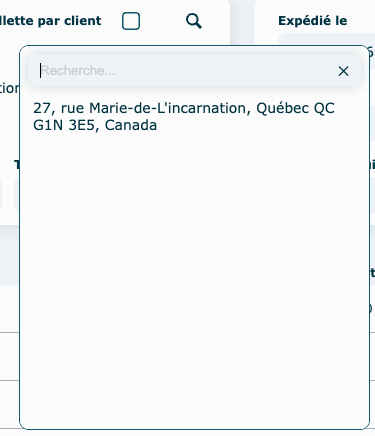Vous y trouverez toutes les adresses liés à votre client. Si l'adresse est manquante, veuillez vous rendre dans le module client pour l'ajouter.