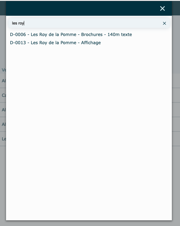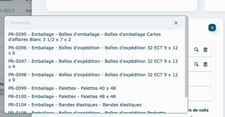 Puis en utilisant la loupe, vous pourrez trouver des emballages déjà existant dans vos inventaires de Produits.