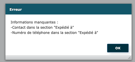 Cette action vous permettra de pouvoir l'imprimer et/ou l'envoyer au client une fois validé. Si des informations sont manquantes, le système vous affichera un message d'erreur avec le détail.