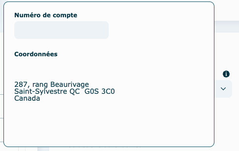 • Destinataire : l'adresse sera celle déjà sélectionnée dans le bon de livraison, vous devrez entrer son numéro de compte seulement.