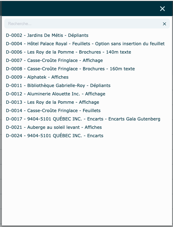 Sélectionnez un dossier à facturer. Vous pouvez utiliser le filtre pour isoler un client ou trouver un dossier facilement.