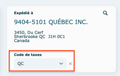 Assurez vous de remplir le code de taxes.