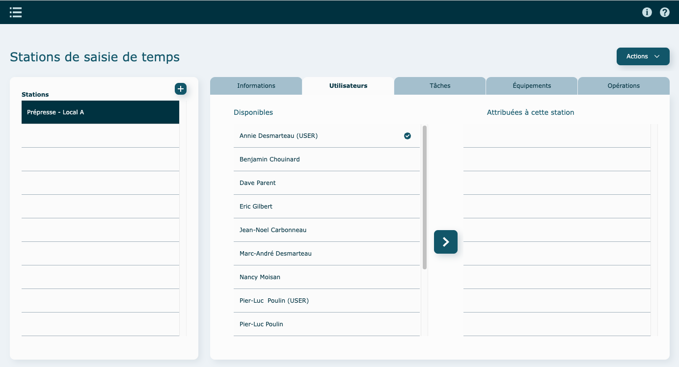 Dans l'interface d'accueil de Saisie de temps, tous les employés assignés à cette station seront visible à droite de l'écran.