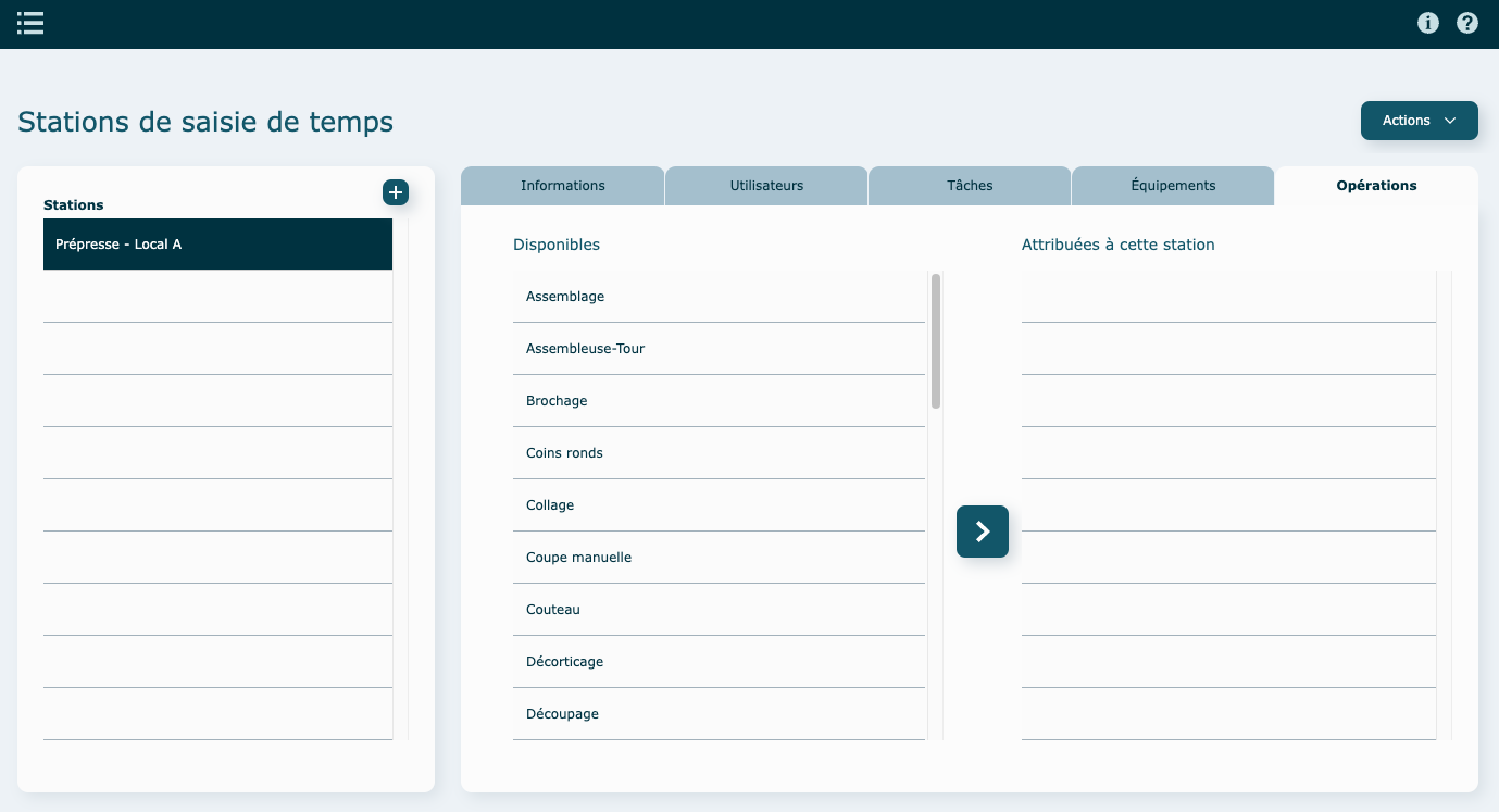 Il est donc possible de créer 1 station par département ou par équipement. Exemple : presse, reliure, expédition etc.