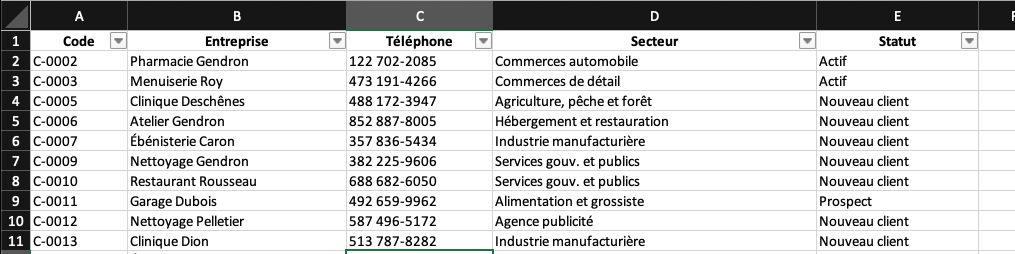 - Les entêtes de colonnes porteront le nom se trouvant dans votre mode liste ou votre rapport.