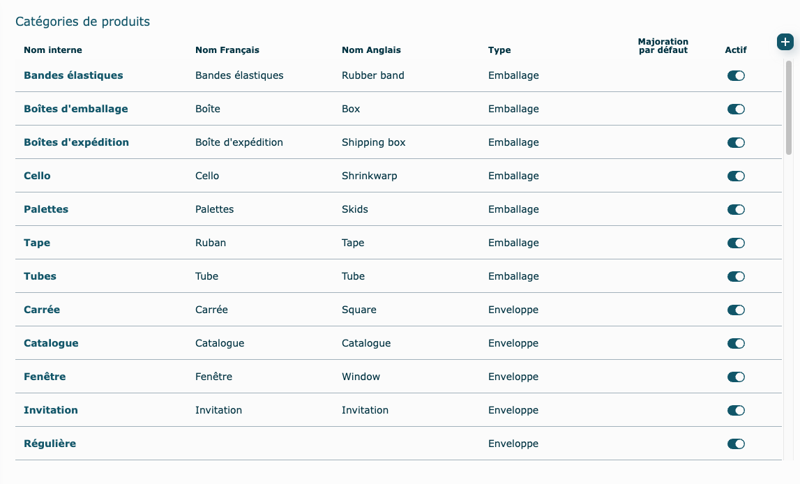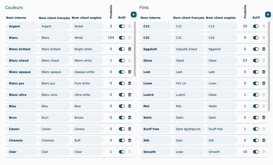Définissez vos catégories de produits ( matières premières ou autres), les couleurs et finis possible.