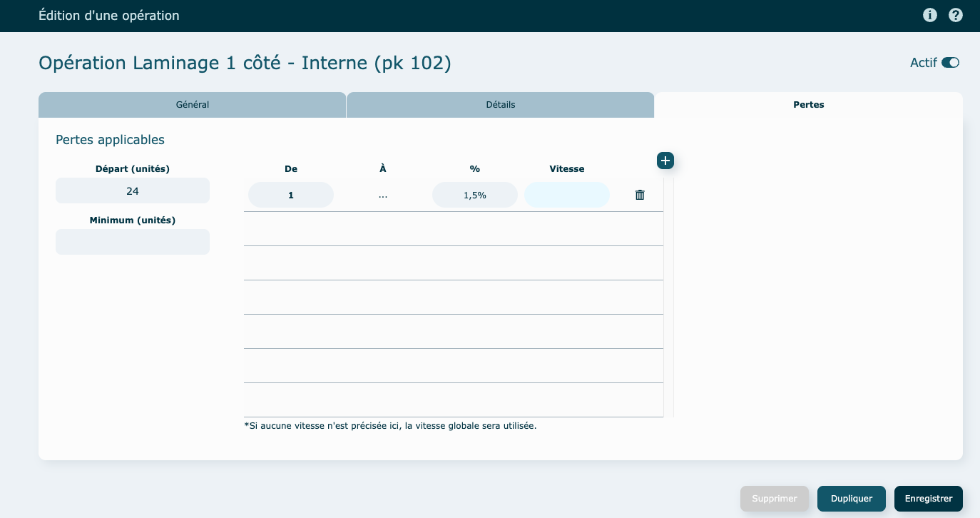 Un item avec une quantité produite ( colonne Produits) ne peut pas être supprimé.