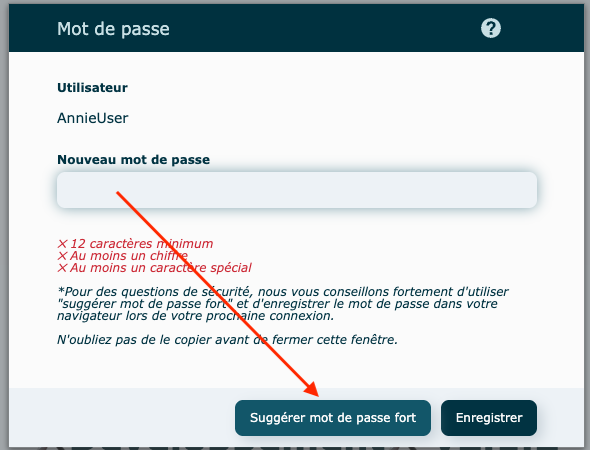 • À noter que quand l'utilisateur se connectera la première fois, il devra ensuite choisir un nouveau mot de passe.